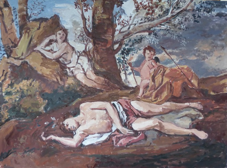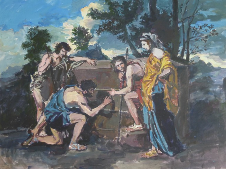 Recently I copied the famous work by Poussin, Et In Arcadia Ego, or Les Begers d’Arcadia’ ( c. 1637-1638) , the better to understand the theme in art history, and the controlled, but very beautiful, composition of Nicolas Poussin.