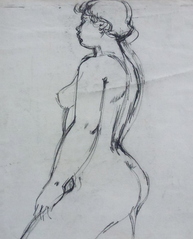 Above are some of my Janie Alston life drawings from her time at Glasgow School of Art during the 1950s. They show the influence of the teaching at GSA. William Drummond Bone’s principles; encouragement of using materials like charcoal, red conte, ink to free; space filling; finding the form (before details); looking at the tension in the form, the taut line and the slack line…