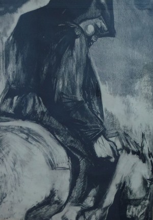 Gavin Alston created this most impressive set of monotypes for his exhibition at The Grail Gallery in 1963, prior to his death. For me they represent the summit of his work. They are, in my opinion, the most 'contemporary' i.e. seem to show the influence of Robert Colquhoun and Graham Sutherland, contemporaneous artists. Strong draughtsmanship, emotional intensity and imaginative composition are fused successfully in this powerful series of works.