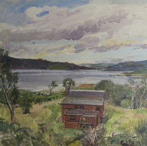 The cottage, the landscape and memories past and present, are imprinted in my imagination. The ancient oak woods we would walk through, swirling lichen covered shapes, loom large in my dreams. The open and uninterrupted view out of the window to the bay, across Loch Fyne to Tarbet, the small fishing village sometimes concealed by mist, or on a clear night, the houses across the Loch take the form of a string of fairy lights. The myths of ancient stones that mark the landscape of ancient Dalriada, and the deserted village, where it is said that the last occupant, in 1914, took his own life. People have walked here before me and since. Night time lit by the soft glow of fire and dull light of paraffin lamps, storytelling. Waking up to the gentle patter of rain drops on the roof and cry of seagulls. This place conjures up in my mind so many visual and sensory emotions, only by beginning to document them in my work can I make sense of them. Asherson's quote resonates with me, the landscape and human presence exist together 'at some level one'.